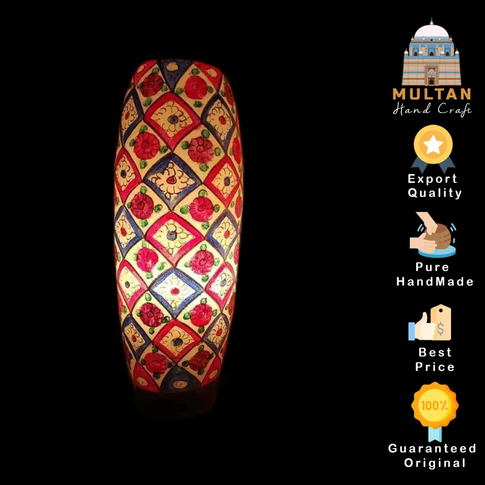 The Camel Skin Lamp Bottle Shape Pure Multani Handmade Lamp will add an international flavor to any room. The colors and intricate design of the lamp make it perfect for a variety of décor styles. This lamp is perfect for traditional, contemporary, or eclectic décor and is sure to be a conversation starter.
